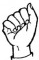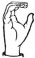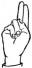 На ћирилици написано ЛАНА АРСИКИН састоји се из 11 слова [?]. Исписано ћириличном једноручном азбуком за глувонеме: